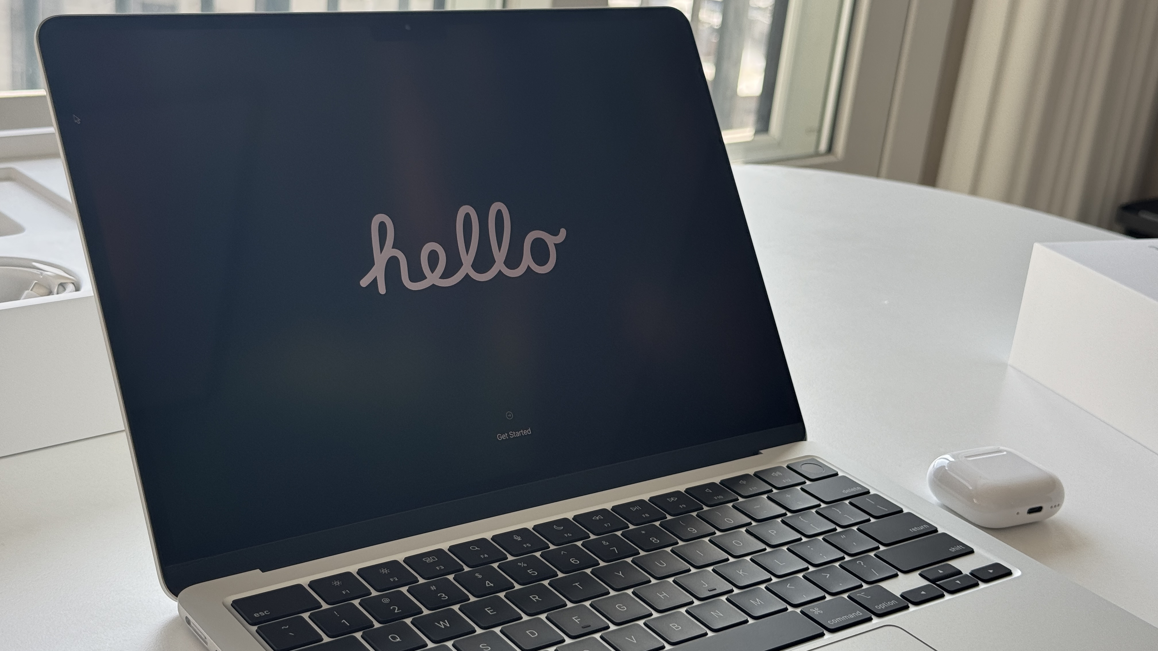 따로 전원 버튼을 누르지 않아도 맥북을 열면 바로 부팅이 시작된다. 기본적으로 배터리가 많이 충전되어 있기 때문에 초기 세팅하는 동안 충전선은 전혀 연결하지 않았다.