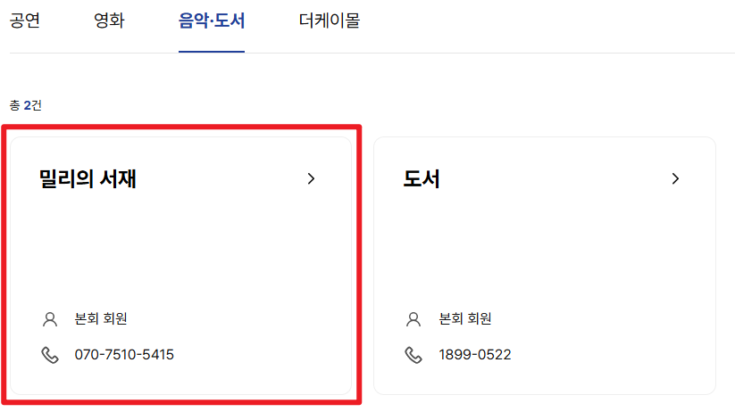 2건 중 [밀리의 서재]가 있다.