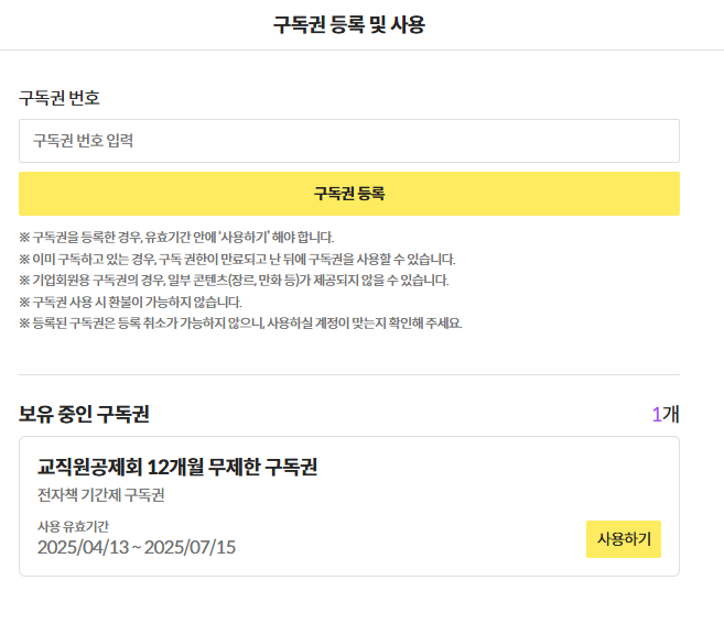 [구독권 사용하기]를 누름과 동시에 1년 사용이 시작된다.
