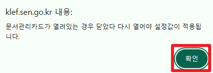 변경 후에는 우측 상단 [저장]을 클릭하고 팝업을 확인한다.