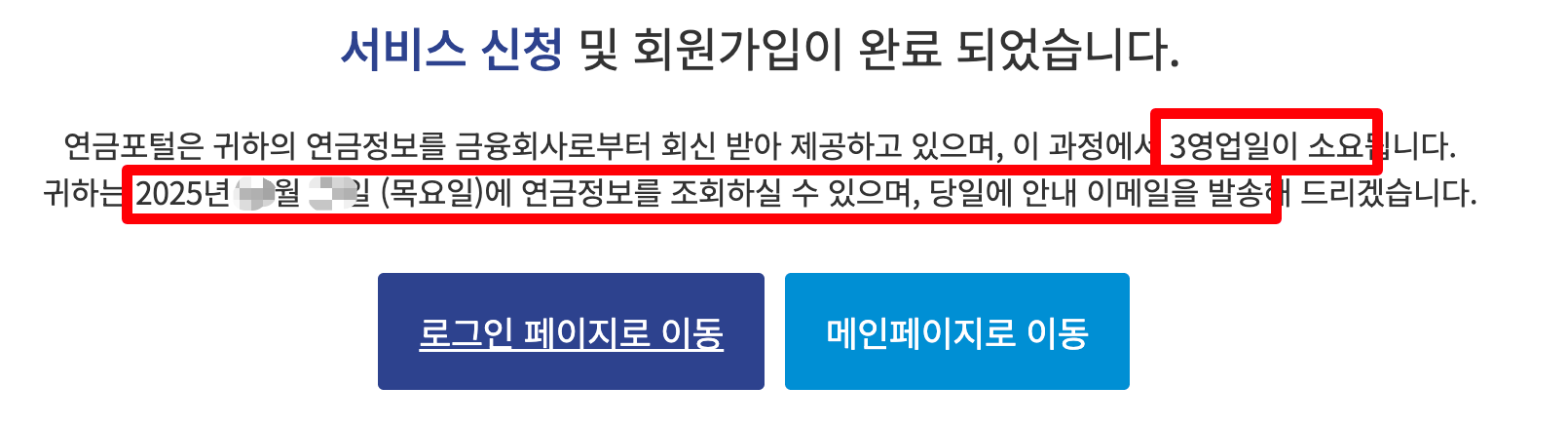 가입 후 연금 정보를 조회하는 데까지는 3영업일이 필요하다.
