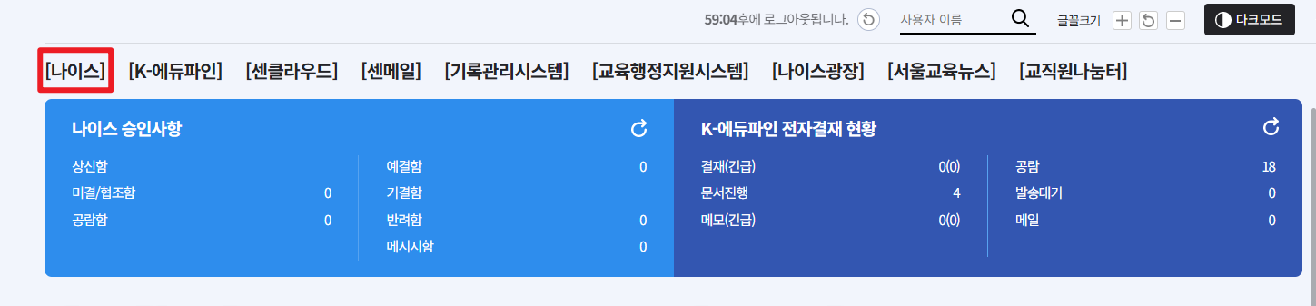 우선 [업무포털]의 [나이스]로 들어간다. EVPN 환경에서도 발급 가능하니 참고.