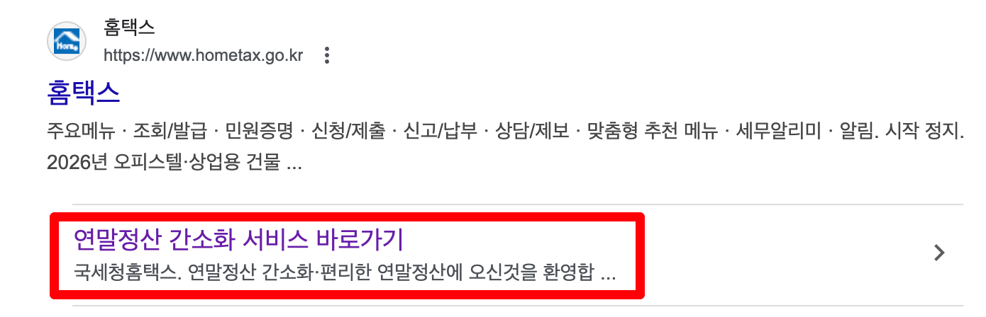 아직 아무 것도 하지 않은 상태라면 홈택스 사이트에 먼저 접속해야 한다. 연말정산 시즌이 되면 사진과 같이 [간소화 서비스 바로가기] 항목이 안내되니 조금 더 편하게 접속할 수 있다.