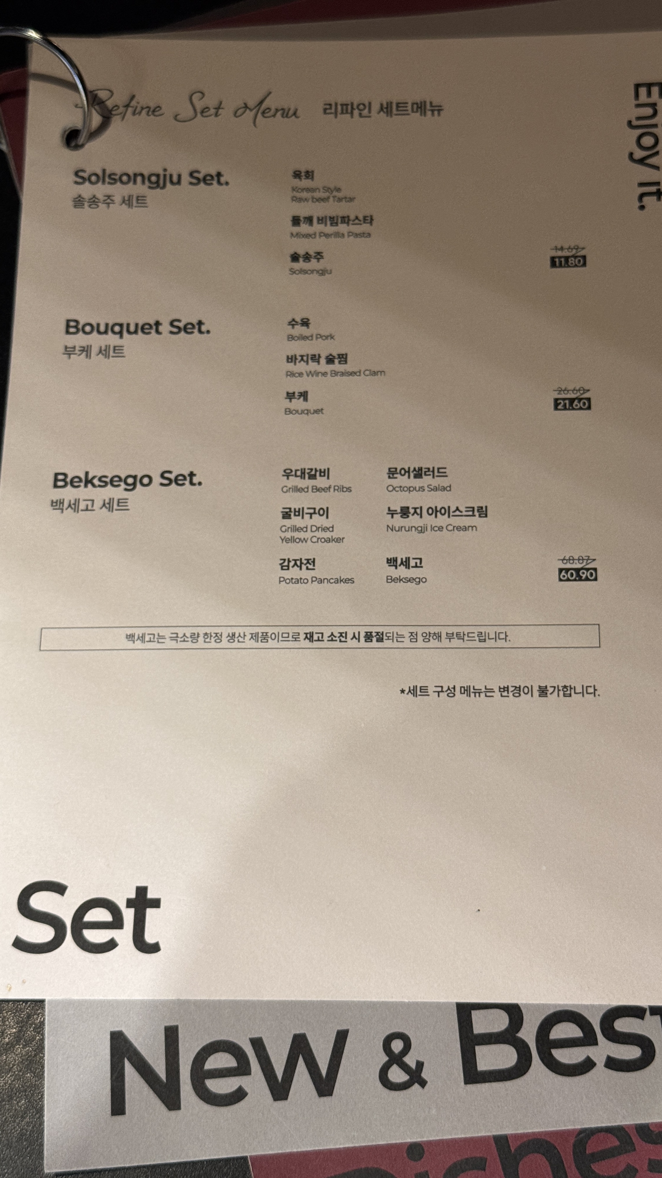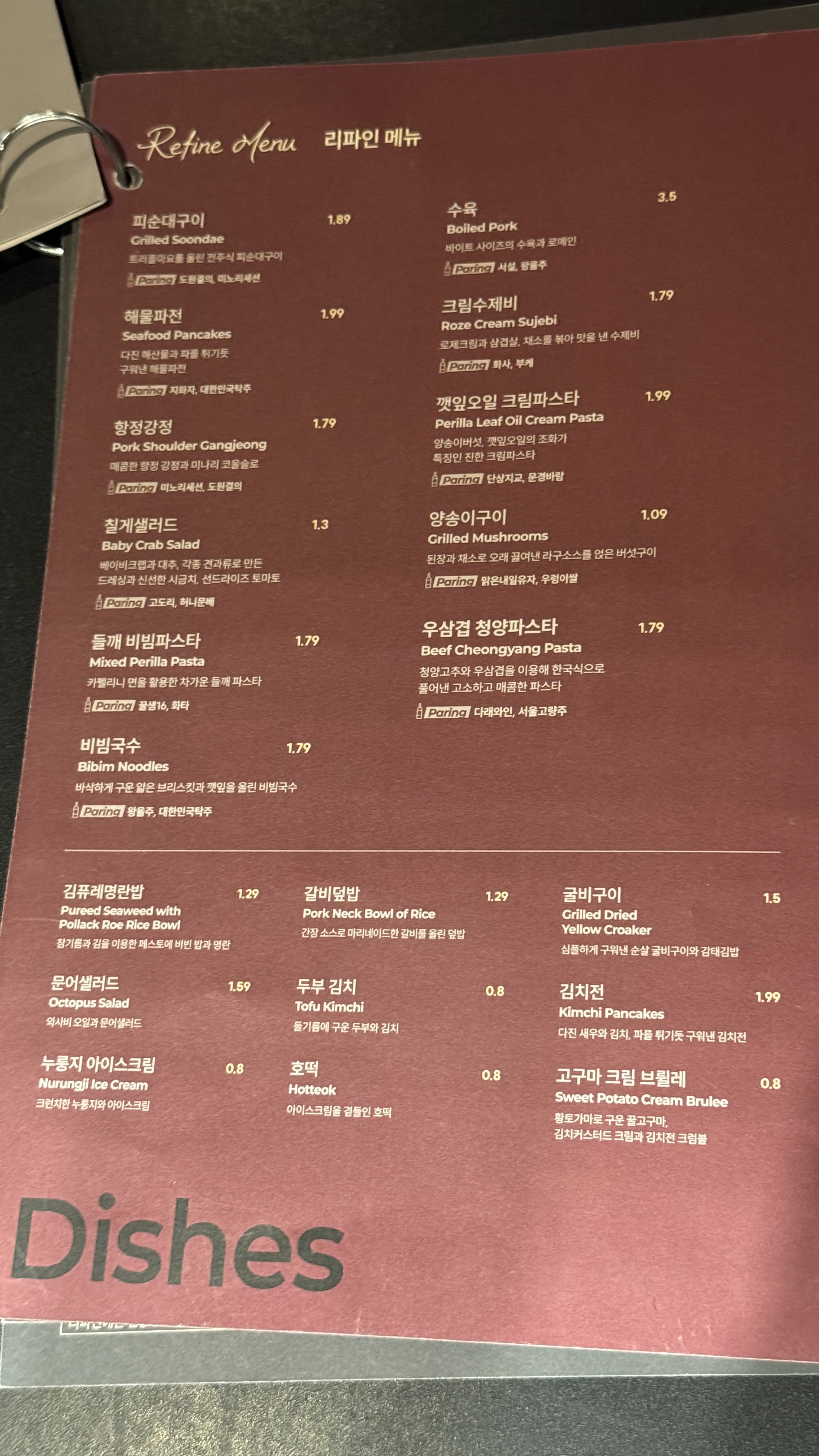 리파인 서울대점 메뉴.