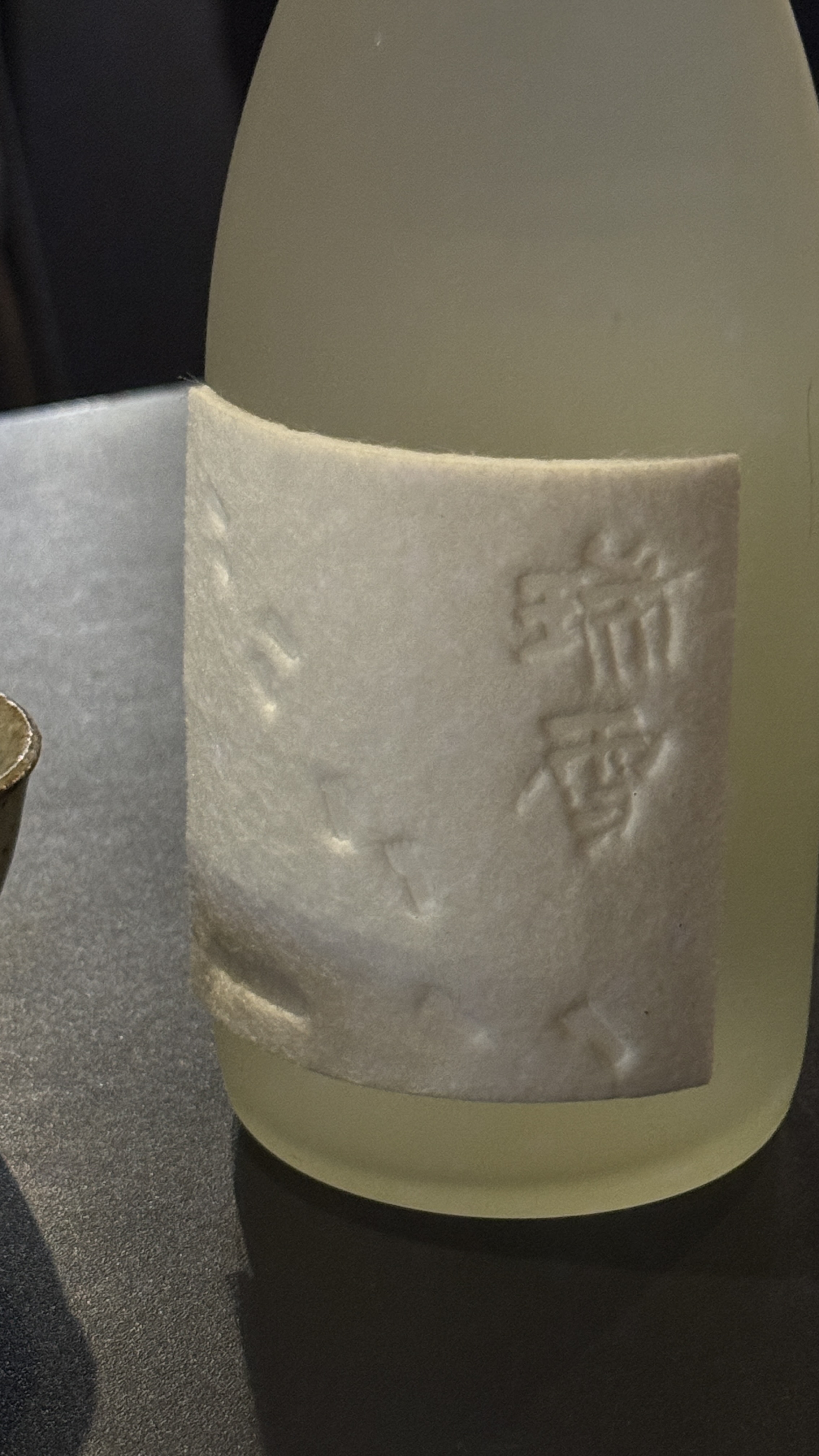 도톰하고 짜임새 탄탄한 부직포 같은 라벨에 음각으로 눈 발자국과 한자로 된 술 이름이 박혀 있었다. 자꾸 만져보게 되는 개성 있는 라벨.