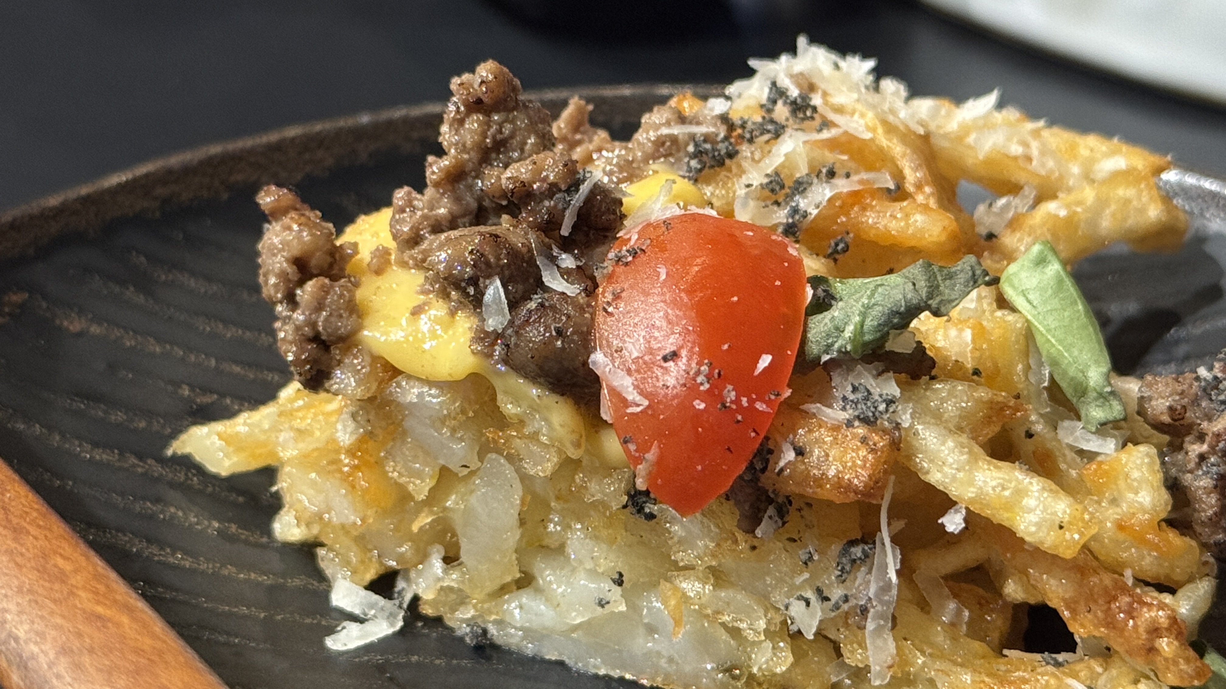 인기 메뉴 중 하나였는데 도톰한 형태로 쌓아올린 감자가 눈에 띄었고 피자처럼 표현한 것도 재미있었다.