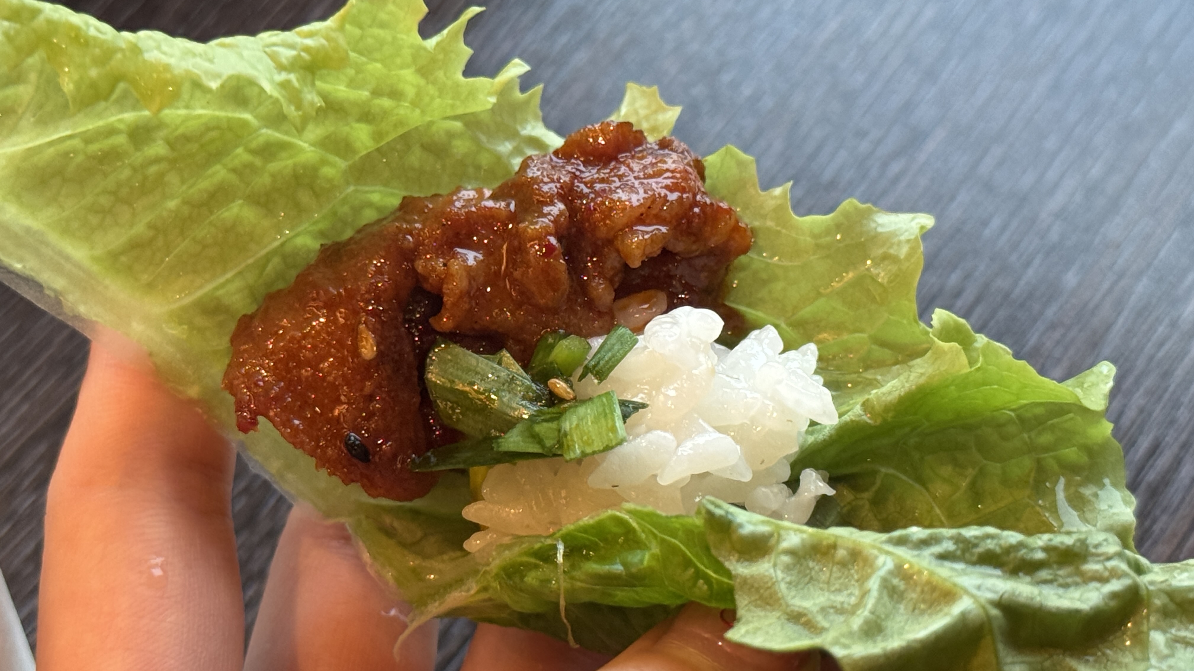 제육은 조금 매콤한 편이니 참고. 그렇다고 입에 불이 날까 걱정할 정도는 아니다. 쌈에 이것저것 넣어 함께 먹으면 무난하고 제육만 집어 먹으면 매콤함이 느껴지는 수준.