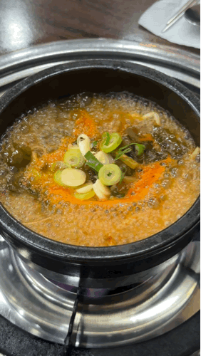 주문 후 곱창이 나오는 동안 불에 선지국을 올려주신다.
