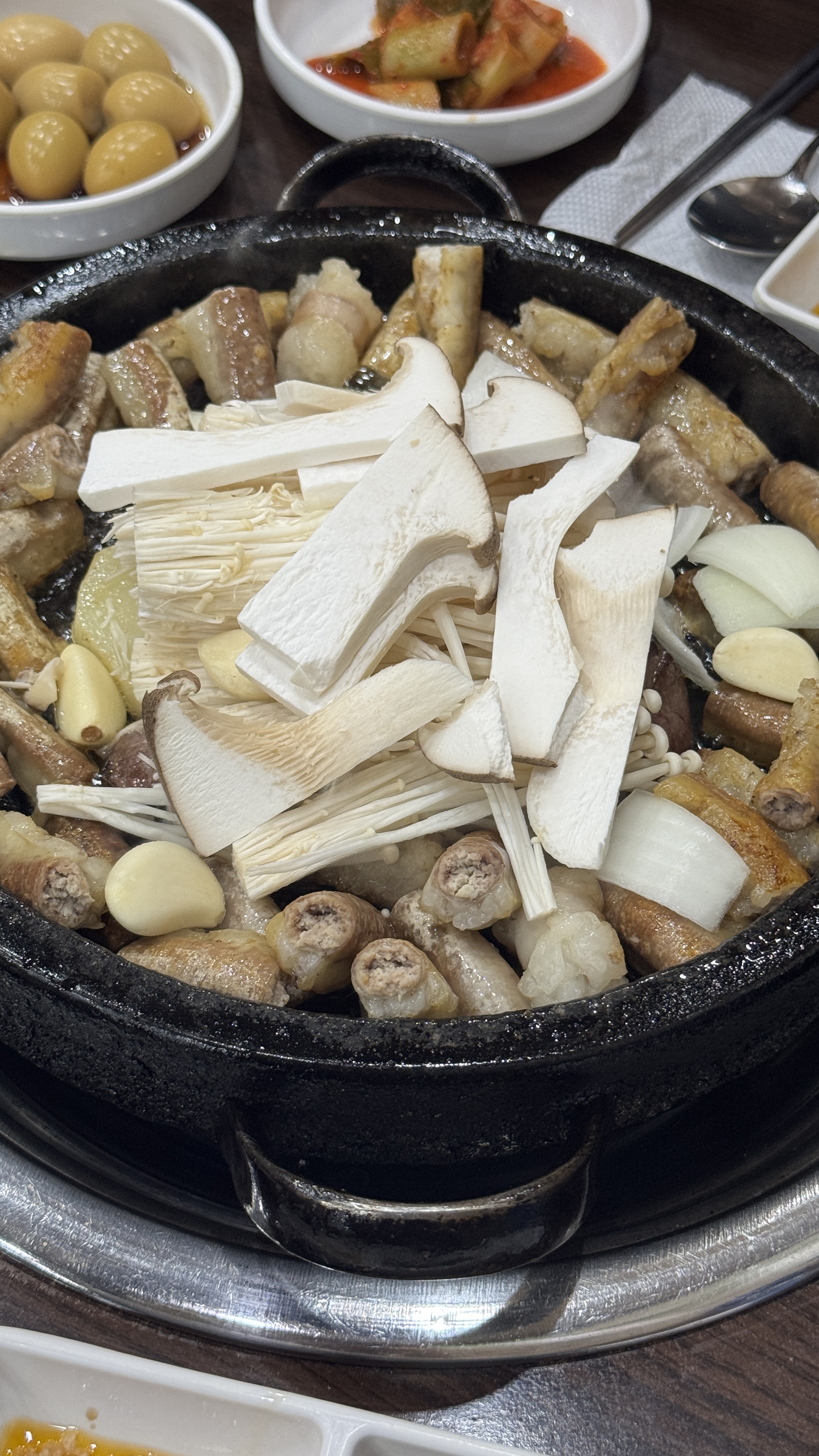 대화하는 데 빠져서 밑반찬 사진을 못 찍었다. 위 사진의 곱창 뒤에 살짝 보이긴 하는데, 여러 가지 밑반찬이 나온다.