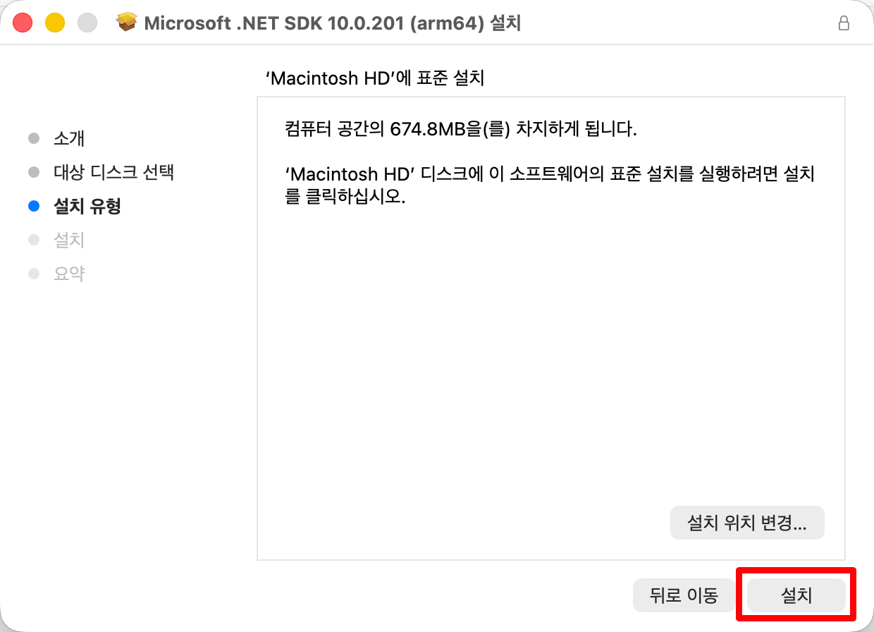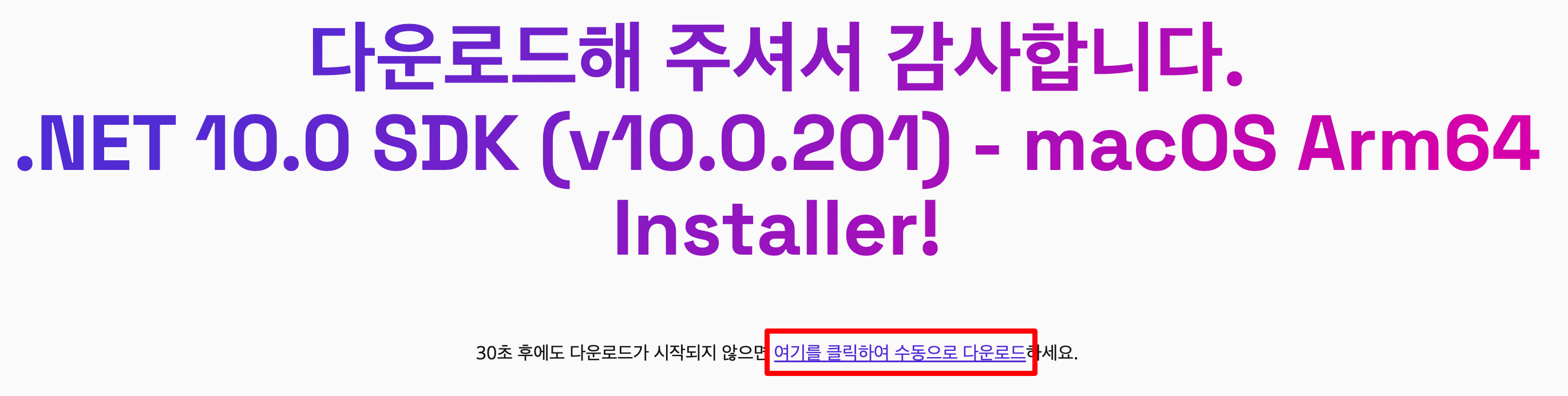 링크에서 [.NET SDK Arm64(Apple Silicon) 다운로드] 버튼을 누른다.
