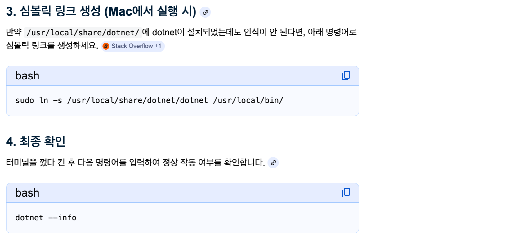 결과적으로 .NET SDK 설치 후에도 반복되는 zsh: command not found: dotnet 이슈는 이 게시글과 구글 검색 요약 화면을 보고 해결했다.