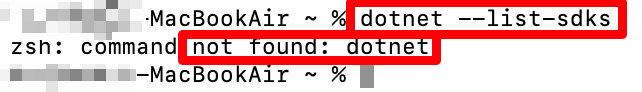 현재 내 맥북에는 .NET 다운로드 이력이 없기 때문에 위와 같이 zsh: command not found: dotnet라고 나온다.