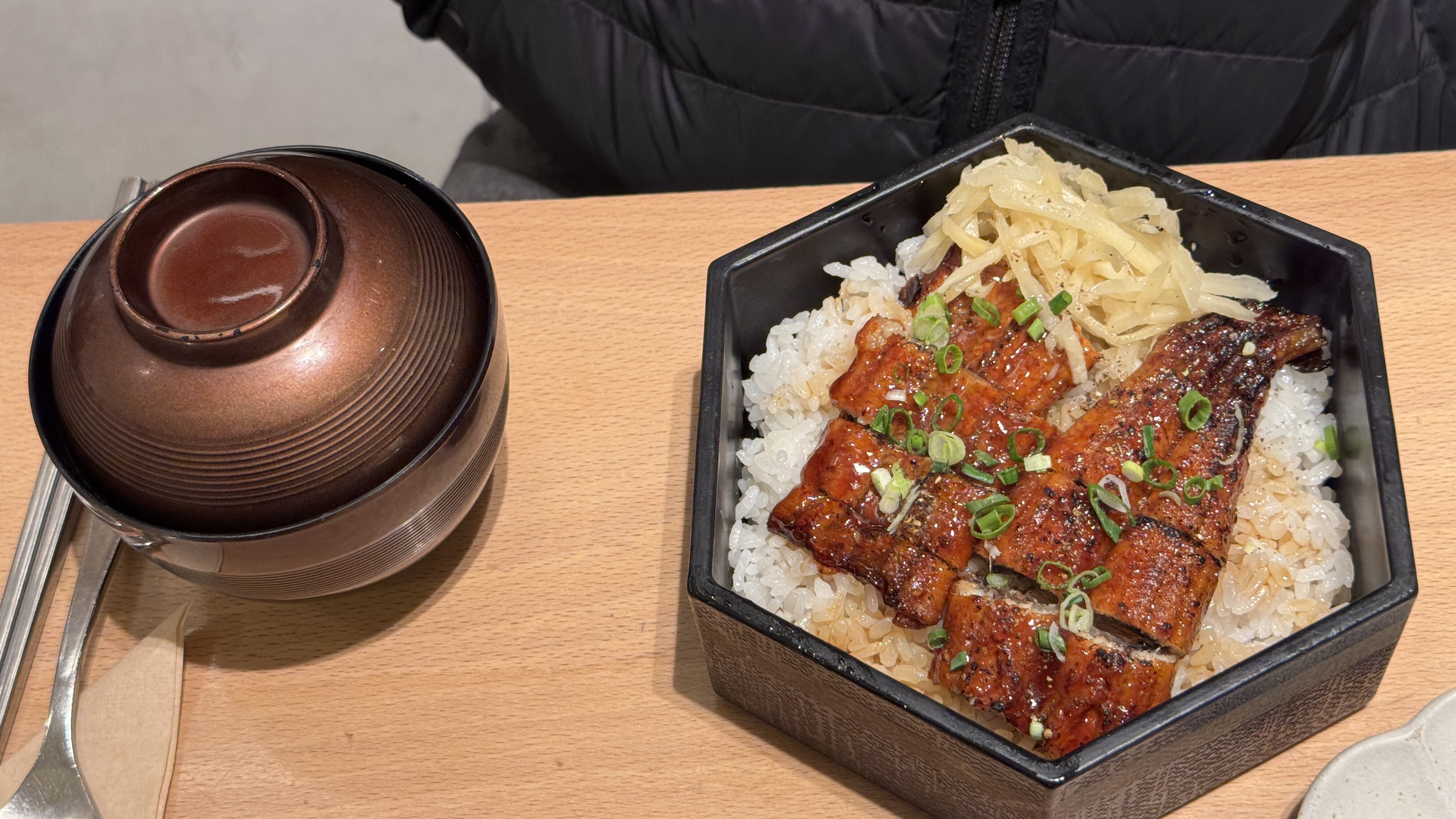 우나기동은 장어 한 마리가 통째로 들어간다고 되어 있는데, 큰 장어는 아니라서 양 자체는 보통이다. 마찬가지로 된장국이 함께 나왔다.