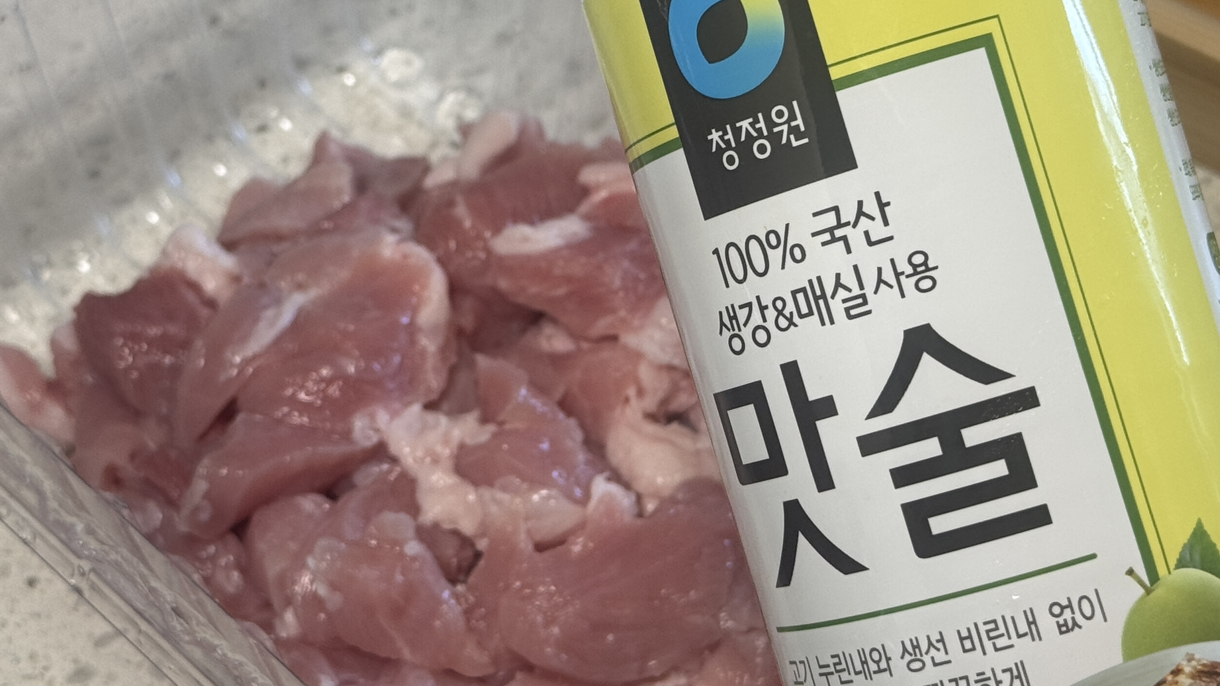 핏물을 제거한 뒤에는 잡내 제거를 위해 맛술을 살짝 뿌려 버무려줬는데, 없다면 생략해도 된다.